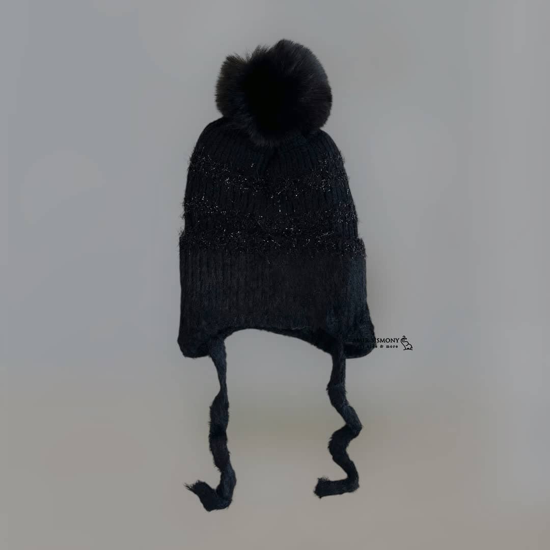 کلاه بافت دخترانه بند دار از نوع رو گوشی می باشد و روی گوش ها را نیز می پوشاند.