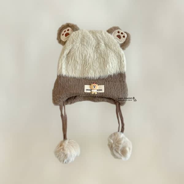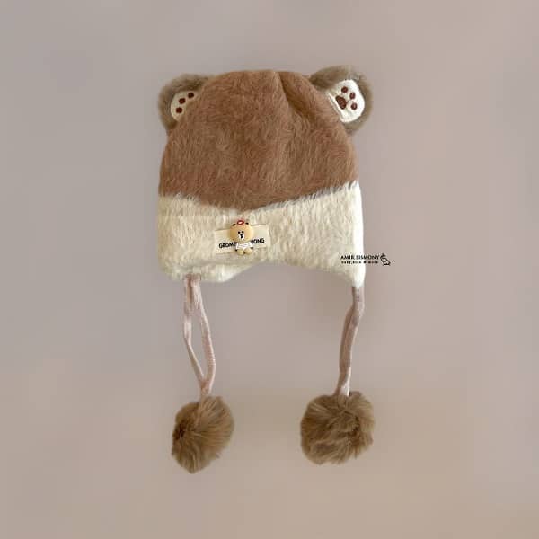 کلاه زمستانه نوزادی بند دار طرح خرس با دارا بودن دو بند که زیر گردن بسته می شود بهترین انتخاب برای کودک شماست.