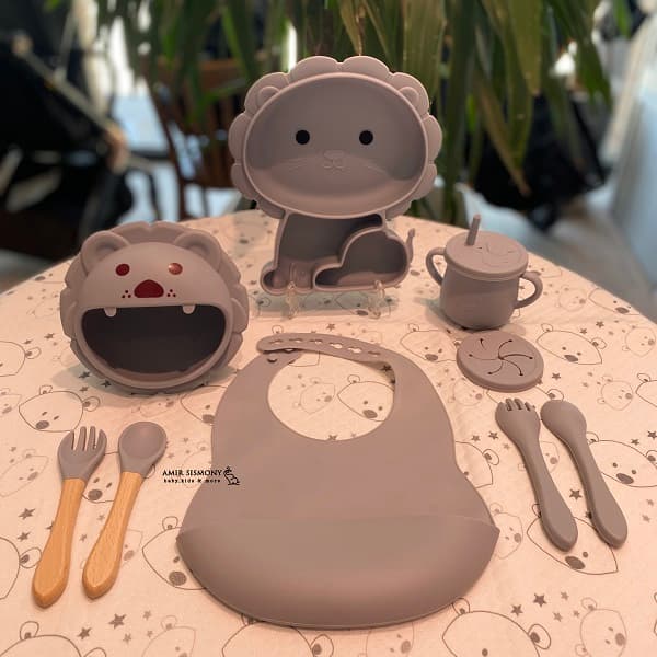 ظرف غذا سیلیکونی 9 تکه طرح شیر یکی از زیباترین و باکیفیت ترین ظروف غذاخوری برای تغذیه بهتر کودکان می باشد.