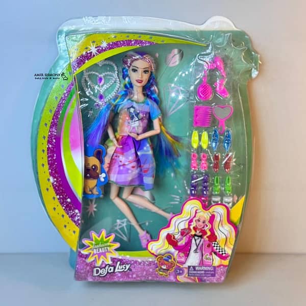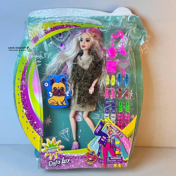 استفاده از رنگ های متنوع در طراحی این عروسک دخترانه، سبب می شود تا کودکان با انواع رنگ ها نیز آشنا شوند.