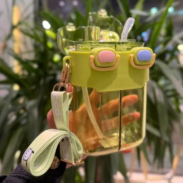 همچنین برای نوشیدن آب و آبمیوه، این قمقمه دارای 2 نمونه سری می باشد یکی از آن ها دارای نی سیلیکونی و دیگری به صورت قمقمه ای می باشد.