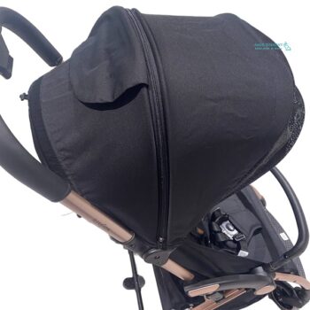 سایبان بزرگ این کالسکه از برخورد مستقیم نور خورشید به کودک جلوگیری کرده و امکان دید مادر به کودک را نیز فراهم می کند.